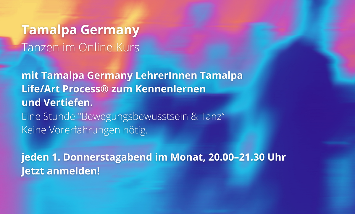 Willkommen bei TAMALPA GERMANY Dem Weiterbildungsinstitut in Expressive Arts Therapy, Embodiment und kreativer Selbsterfahrung nach der Tamalpa Life/Art Process® Methode. Aktuelle Kurse und Seminare · Aktuelle Kurse und Seminare · Expressive Arts Therapy, Embodiment und kreative Selbsterfahrung Hier kann eine Reise zu mehr Bewusstheit, Ausdruck und Lebendigkeit beginnen. Im Tamalpa Life/Art Process® von Anna Halprin und Daria Halprin verbinden sich Tanz, Bewegung, Malen und Schreiben zu einer einzigartigen Embodiment Methode. Online-Seminare Über uns Der Tamalpa Life/Art Process® – Dein Weg der Selbsterfahrung Mit dem Tamalpa Life/Art Process® entsteht ein Raum zur Selbsterfahrung, in dem Körper, Gefühle und Geist in Einklang kommen. Ein Raum, in dem Du deinen Körper als Quelle von Wissen, Inspiration und Veränderung entdecken, innere Balance finden und Dein kreatives Potenzial entfalten kannst. Mehr erfahren Für Künstler*innen, Therapeut*innen, Coaches und alle, die kreative Wege zu sich selbst suchen Ob als Künstler*in, Therapeut*in, Coach oder als Mensch, der kreative Wege zu sich selbst sucht, bei Tamalpa Germany lernst Du durch kreative und körperorientierte Methoden – im Sinne der Expressive Arts – mehr Bewusstheit, innere Balance und Ausdruckskraft zu entwickeln und Dein Leben zu gestalten. Mit Abschluss aller Ausbildungsteile Level 1/2/3 kannst Du die Zertifizierung als Bewegungstherapeut*in / Bewegungspädagog*in nach Ismeta erhalten. Das Tamalpa Institute USA mit allen internationalen Zweigstellen hat Tausende Graduates und Practitioner ausgebildet und ist in der Expressive Arts Therapy weltweit anerkannt. Aktuelle Termine TLAP-Kurzworkshop „Polaritäten“Am 20. März 18:30 - 21:30 Kurzworkshop ”Polaritäten” in Freiburg mit Katrin Stelter20.03.2026 18:30 – 20.03.2026 21:30Habsburgerstraße 9, 79104 Freiburg, Deutschland (Auf Google Maps anzeigen)Infos und Anmeldung Die transformative Kraft der Expressive ArtsMöchtest deine Fühler ausstrecken und die Kraft deines Ausdrucks entdecken?24.03.2026 19:00 – 24.03.2026 21:00OnlineInfos und Anmeldung Deiner Essenz auf der Spur mit dem Tamalpa Life/Art Process®Dein Körper weiß den Weg. Lass dich über freie Bewegung von innen in deine Kraft und Leichtigkeit führen. 28.03.2026 10:00 – 28.03.2026 17:00Kleinbuchbergweg 6, 8200 Schaffhausen, Schweiz (Auf Google Maps anzeigen)Infos und Anmeldung Tamalpa Germany Online KursJeden ersten Donnerstag im Monat gibt es die Möglichkeit, in einem anderthalb stündigen „live“ Online Kurs den Tamalpa Life/Art Process® als Methode neu kennenzulernen und/oder tiefer darin einzutauchen.02.04.2026 20:00 – 02.04.2026 21:30OnlineInfos und Anmeldung Gabrielle Roths 5RHYTMS® und TAMALPA LIFE/ART PROCESS® Thema: Connection – VerbindungTamalpa Einführungsseminar Wir in die Landschaft des Körpers ein – dorthin, wo Bewegung zur Sprache wird und der Tanz die Tür zu etwas Größerem öffnet.18.04.2026 10:30 – 19.04.2026 16:00Adlerstr. 12, 79098 Freiburg, Deutschland (Auf Google Maps anzeigen)Infos und Anmeldung MOVEMENT RITUAL 1X IM MONAT 20.04., 18.05. , 27.07.Inhalt dieser Kurzworkshops wird die Form „Movement Ritual“ sein, sowie Hands-On zum Erlernen einzelner Teilabschnitte der Form.20.04.2026 19:45 – 20.04.0206 21:30Fritz-Arnold-Str. 23, 78467 Konstanz, Deutschland (Auf Google Maps anzeigen)Infos und Anmeldung Stimmen von Teilnehmenden Marina, Ganzheitliche Gesundheitsförderin Danke für deine Formulierung, dass mein Tamalpa-Jahr wie eine "Meisterprüfung" für mich war. Das bringt mein Gefühl sehr gut auf einen Punkt. Ich habe eine Meisterprüfung abgelegt. Ich glaube und ich fühle, dass ich viele meiner erlernten Ressourcen üben, festigen und in mir in einer neuen Weise verankern und konsolidieren konnte, so dass ich mich heute mehr denn ja als eine Anna fühle, die sich selber "besitzt". Ich habe ein neues Gefühl von "Ich kann, was ich will. Und ich will, was ich kann", bin im Reinen mit mir - und bin, wie du sagst, mit (fast) allen Wassern gewaschen. (Jedenfalls bis zur nächsten grossen Herausforderung... das hört ja nie auf ). Anna, Sozialarbeiterin Nicole, Tanztherapeutin Der Grundbaustein ist da, der war schon immer da. Das Fundament ist aus Vertrauen und Intuition. Das Grundgerüst aus Liebe und Freiheit. Die Isolierung aus Ehrlichkeit und Klarheit. Die Innenwände aus Präsenz und Kreativität. Die Außenwände aus Leichtigkeit und neuen Grenzen. Die Fenster aus Vielfalt. Die Tür lässt ein und aus - und ich, ich entscheide mich für mich. Ich bin da und angekommen, in meinem Wandelraum. Luise Kenntner, Psychologin und Aktivistin Ich habe gar nicht gewusst, wie schön Wildheit sein kann. Eine Befreiung in 20 Minuten und einem Jahr voller Wunder bei Tamalpa-Germany...... Ich bedanke mich für eure einfühlsame und humorvolle Art beim Unterrichten und beim Begleiten meiner Prozesse. Es ist wirklich eine wundersame Verwandlung, die ich erleben durfte. Iris, Kunsttherapeutin Es war für mich unendlich heilsam, dass ich in den letzten Monaten ganz auf mich hören durfte. Dass ich mich so lange am Boden bewegen durfte, bis zum ersten Mal in meinem Leben der Boden spürbar war. Dass ich weinen durfte, wenn der Schmerz und die Trauer überwältigend wurden. Dass ich Pause machen durfte, wenn ich die Stille brauchte, um etwas integrieren zu lassen. Es war für mich ein riesiges Geschenk, dass ich den Raum bekommen habe, um meiner Intuition zu folgen, mir selbst vertrauen zu lernen und meinen Heilungsweg zu gehen. Bis vor einem Jahr habe ich nie getanzt und war überzeugt, völlig unkreativ zu sein. Das ist inzwischen für mich kaum zu glauben und ich vergesse es oft. Ich bin immer wieder selbst berührt, wenn ich erlebe, mit welcher Leichtigkeit und Lebensfreude, aber auch Stille und Kraft ich jetzt unterwegs bin. Eliane, Musiktherapeutin Das war kein „easy-going“ in diesem Jahr, und dennoch stehe ich am Ende dieses Jahres und blicke v